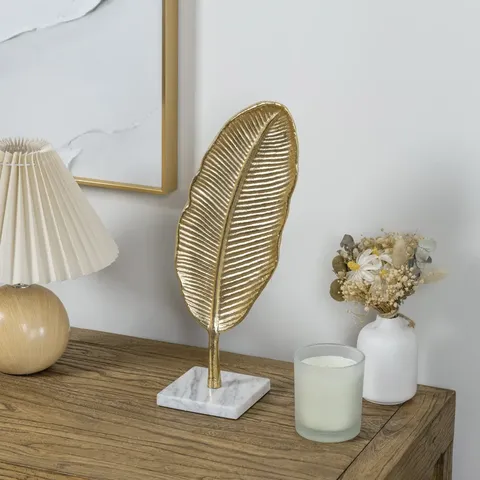 Escultura de hoja dorada, Decoración de mesa moderna de Metal de aluminio, pieza de arte de acento elegante para el hogar para sala de estar