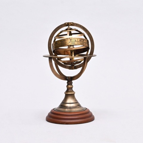 Esfera armilar de mesa de latón antiguo, globo, astrolabio, zodiaco, objeto decorativo grabado para sala de estar